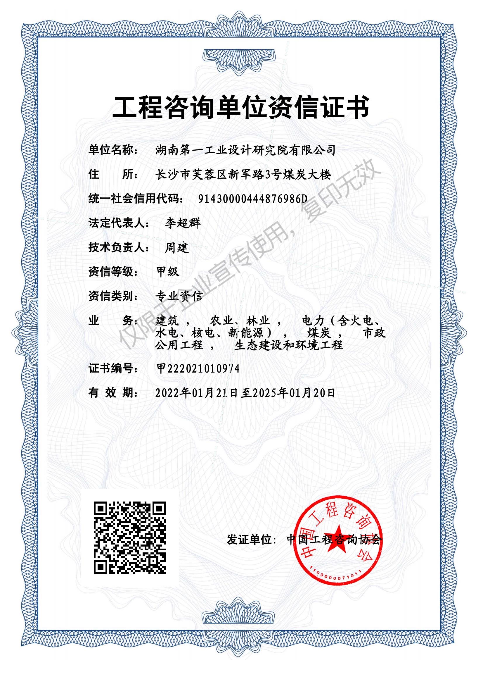 工程設(shè)計資質(zhì)證書(電力行業(yè))